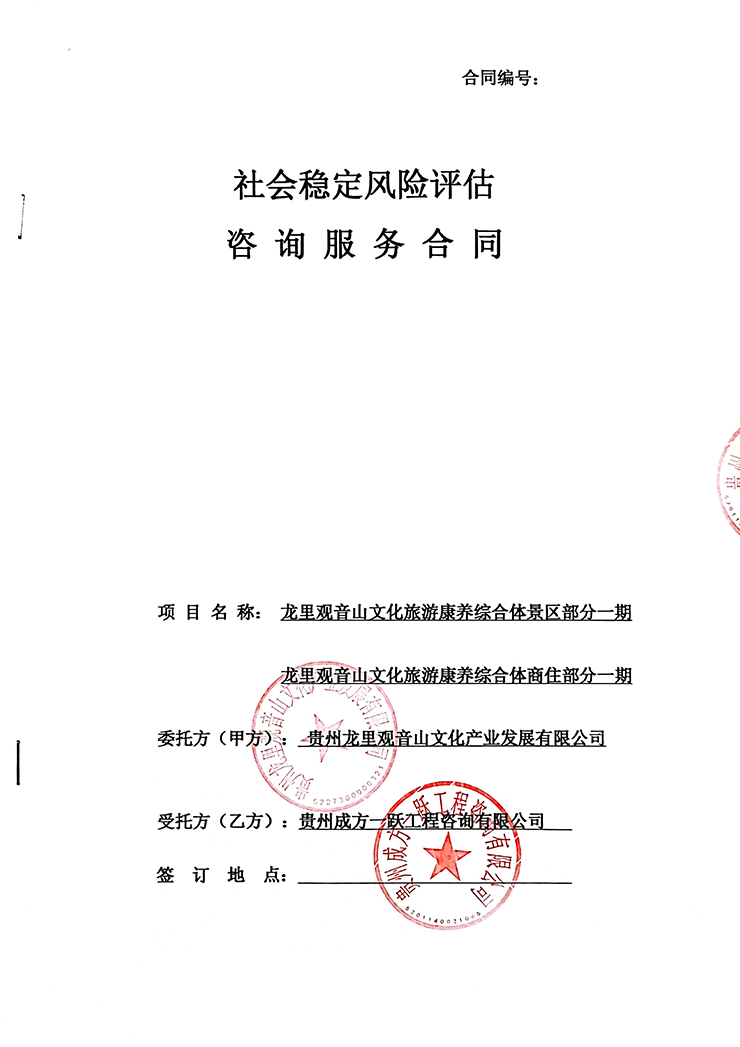 龍里觀音山文化旅游康養(yǎng)綜合體景區(qū)部分一期社會穩(wěn)定風險評估咨詢服務合同